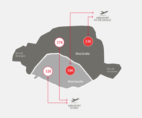 En ce qui concerne les taxis il existe des “forfaits aéroports”. Pour Roissy Charles de Gaulle le tarif est de 53€ pour un départ de la rive droite et 58€ pour un départ rive gauche. Le trajet dure au minimum 30 minutes mais attention en fonction de la circulation cela peut prendre 1h30 voir plus