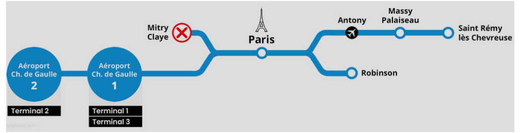 Faites bien attention à choisir le bon train car certain vont en direction de l’aéroport et d’autres en direction de Mitry Claye