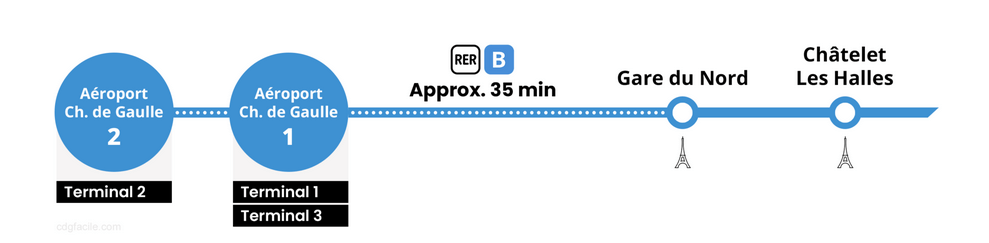 Pour vous rendre à l’aéroport CDG il vous faudra vous munir d’un ticket de “RER aéroport” aux guichets ou automates des stations.