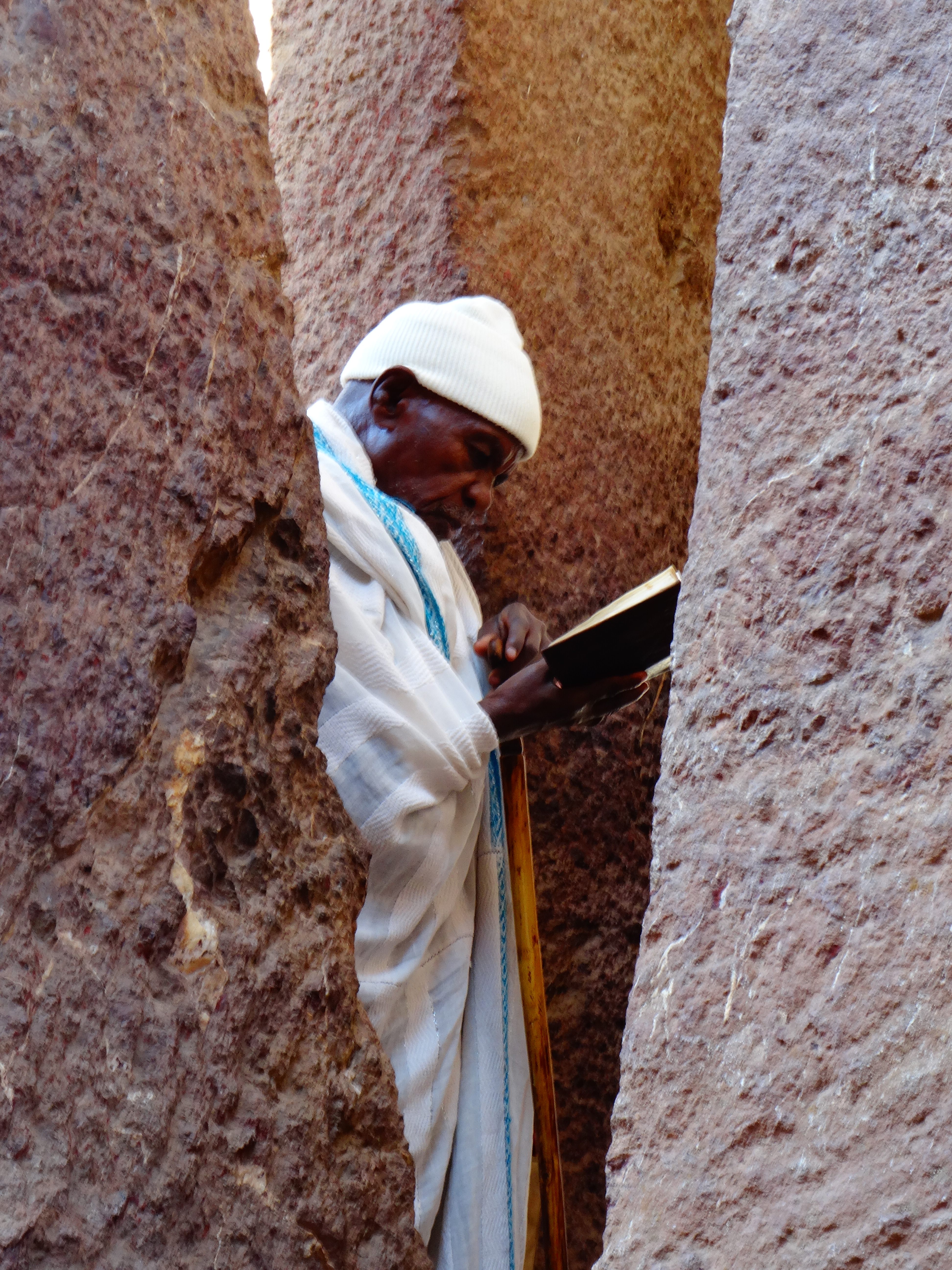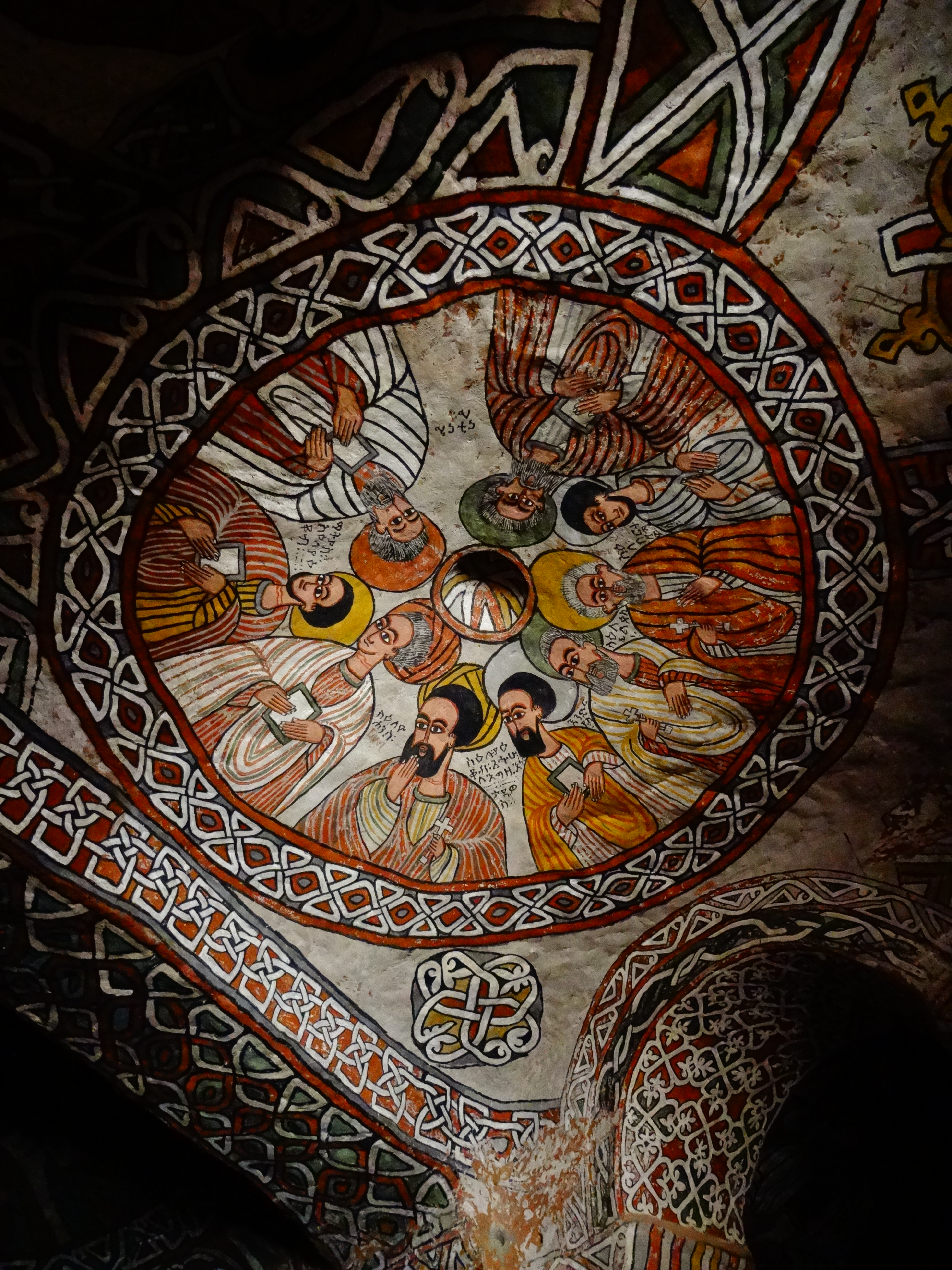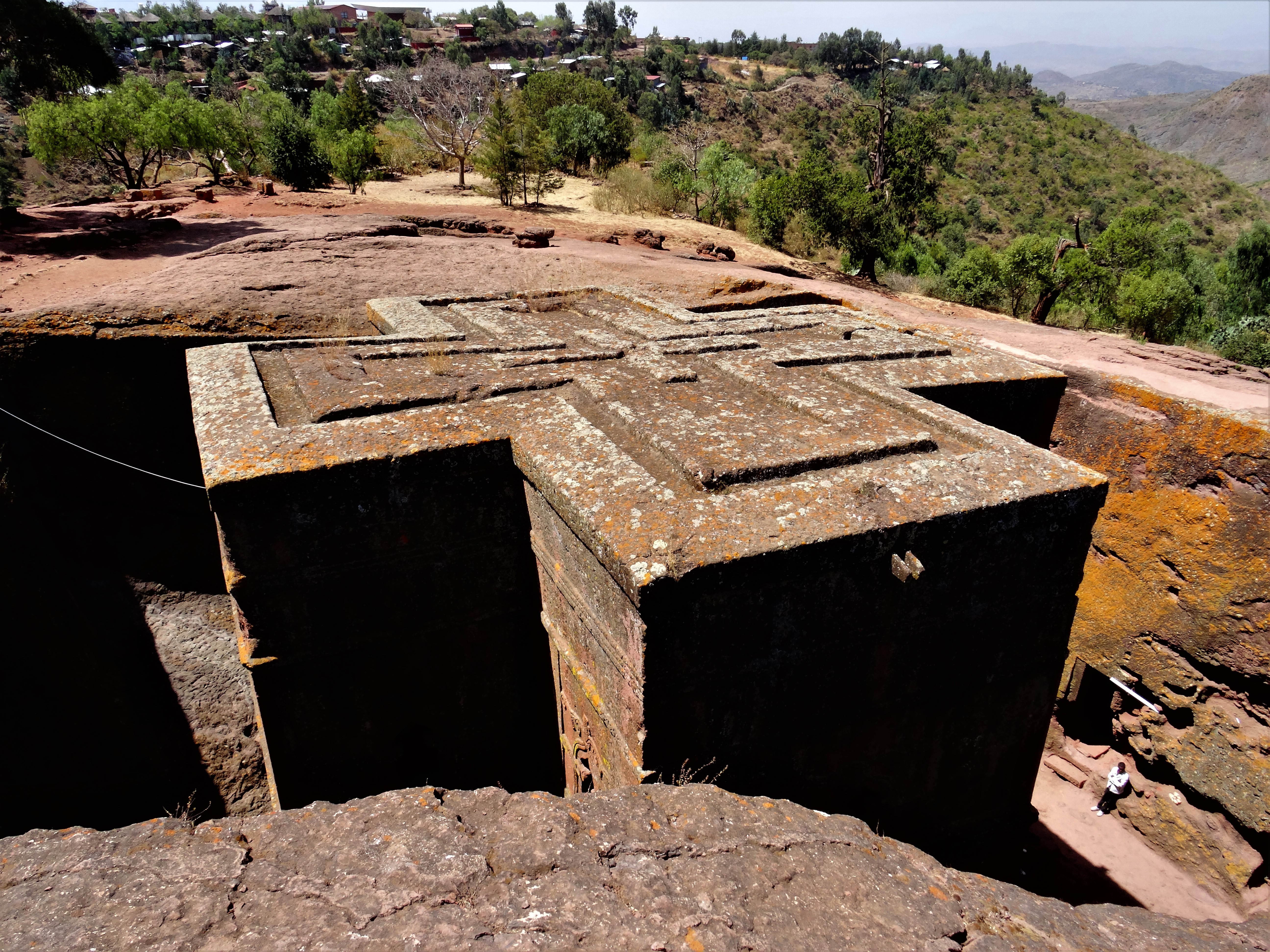 Pourquoi me diriez-vous ont-elles été construites ainsi et non comme les nôtres? Tout simplement le roi Lalibela voulant symboliser la venue du christ sur terre (du ciel vers la terre) a fait construire ces églises du haut vers le bas. Imaginez le travail titanesque pour creuser dans cette roche! Chaque détail architectural est une référence biblique: 10 arches pour les 10 commandements, 12 fenêtres pour les 12 apôtres etc.