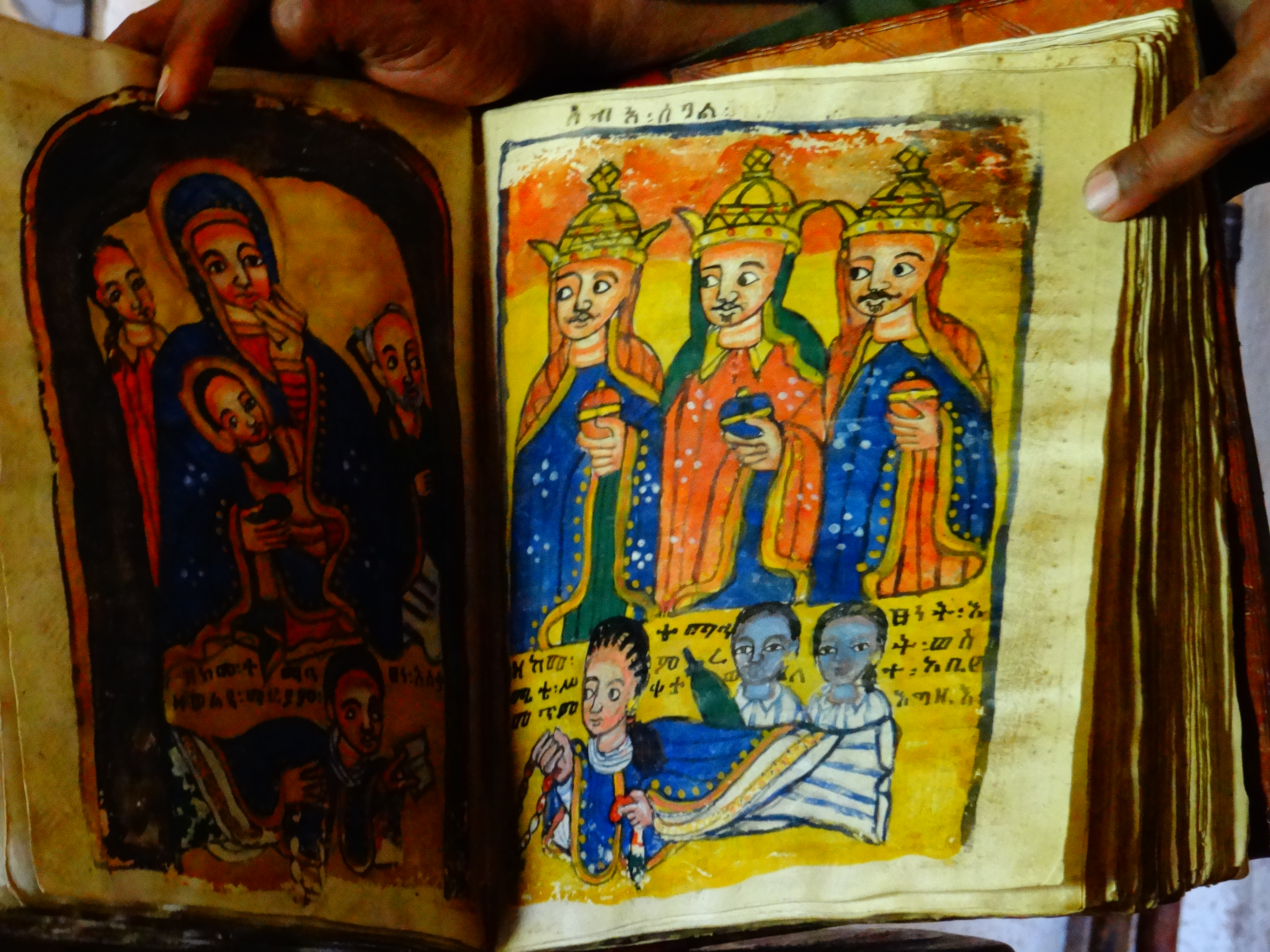 Nous partons aujourd’hui pour 2 jours dans le tigray avec un minibus pour nous toutes seules. Première étape, les montagnes de l Adwa, symbole de la seule victoire d une armée africaine face à une armée européenne. L Éthiopie est le seul pays d Afrique a n avoir jamais été colonisé, même si les italiens ont essayés sans succès. Deuxième étape le temple de Yeha, un des sites archéologiques les plus vieux du monde. Dans le petit « musée », nous avons pu voir plusieurs manuscrits anciens rédigés en Guèze. Le plus ancien avait 1000 ans. Nous avons déjeuné dans un restaurant très traditionnel avec au menu des boulettes de ???? à tremper dans une sauce au sesame…nous avons goûté le tedj, mélange de feuilles et de miel mis à fermenter et donnant une boisson d aspect jaune orangé, de 15 degrés. C était pas mal! Dernière étape de la journée, visite de l eglise orthodoxe st Georges du 4ème siècle.