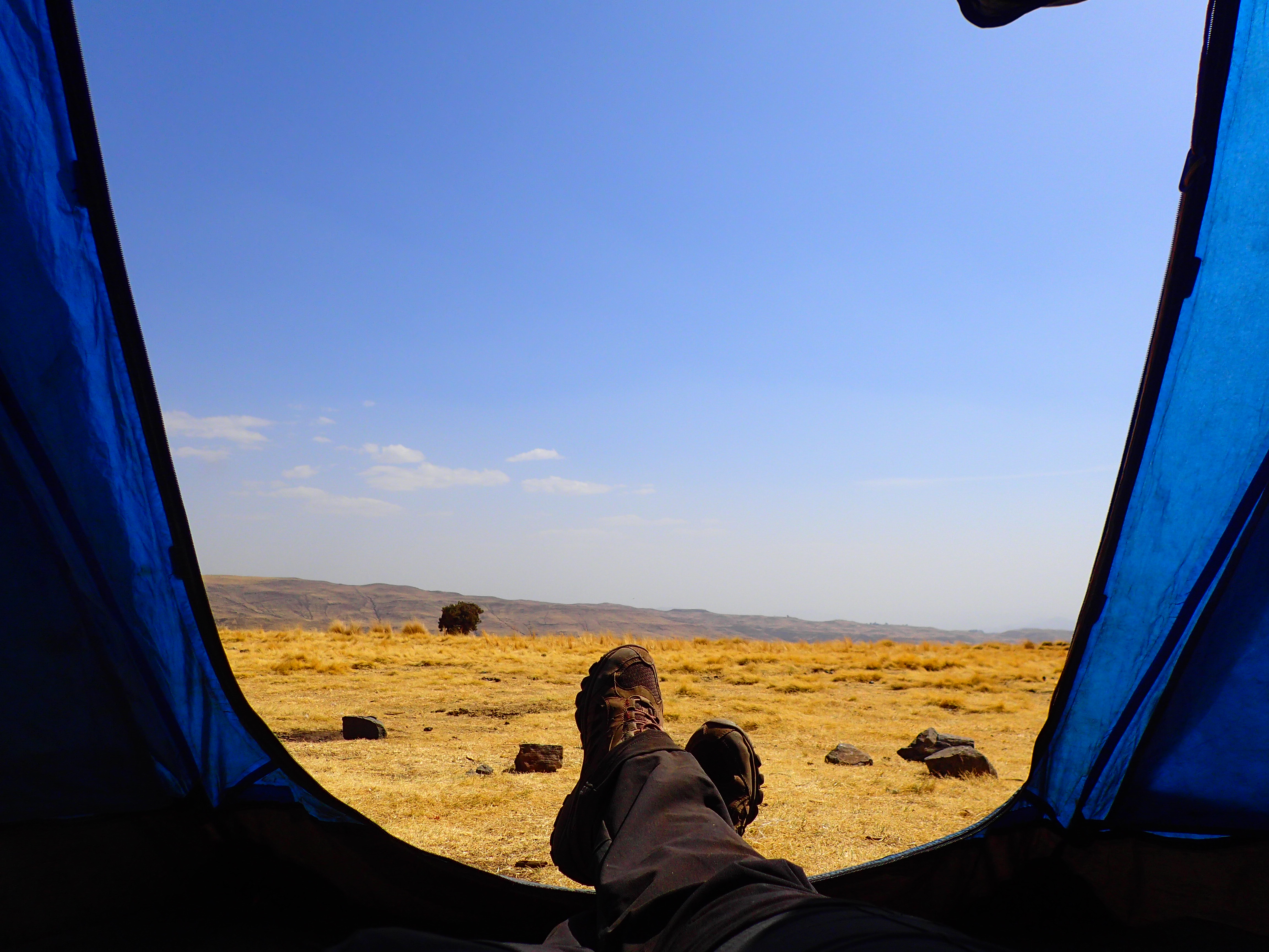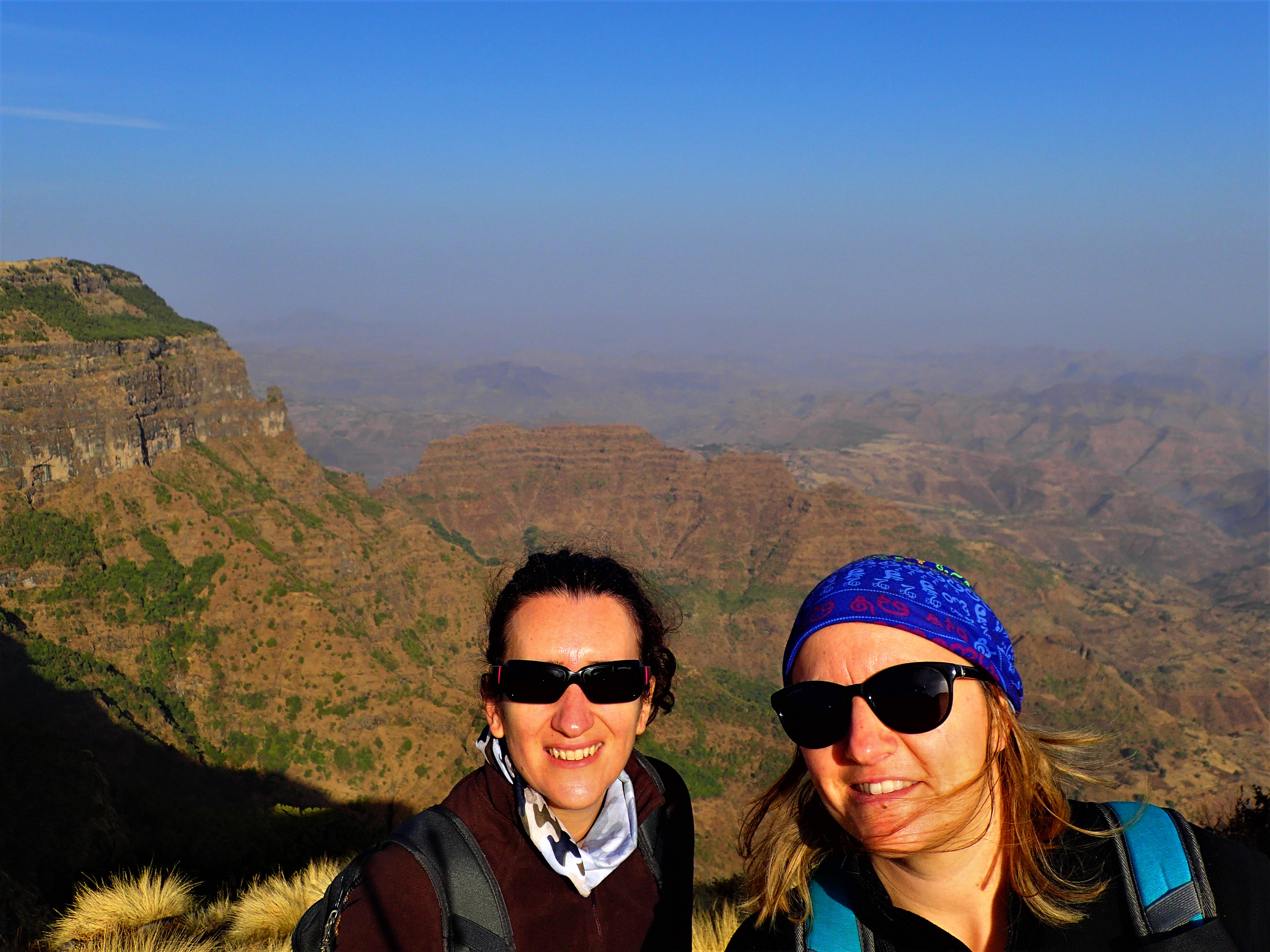 Au levé, voyant l herbe gelée, nous avons compris pourquoi nous n arrivions pas à nous réchauffer dans nos duvets. Après cette deuxième non nuit, et un bon porridge au petit déjeuner, nous partons pour cette dernière journée de 15kms. Cette fois c est Laetitia qui souffre un peu de l altitude, et pour elle cette journée sera très longue et pleine d ampoules (ça vous fait rêver hein?). Partis sur les chapeaux de roues ( ce n est plus un trek mais limite un trail), nous atteignons le sommet d’Imetgogo culminant à 4000 mètres. La vue est phénoménale…c est fatiguées et pleines de poussière que nous rentrons à Gondar pour une des meilleures douches de notre vie!!