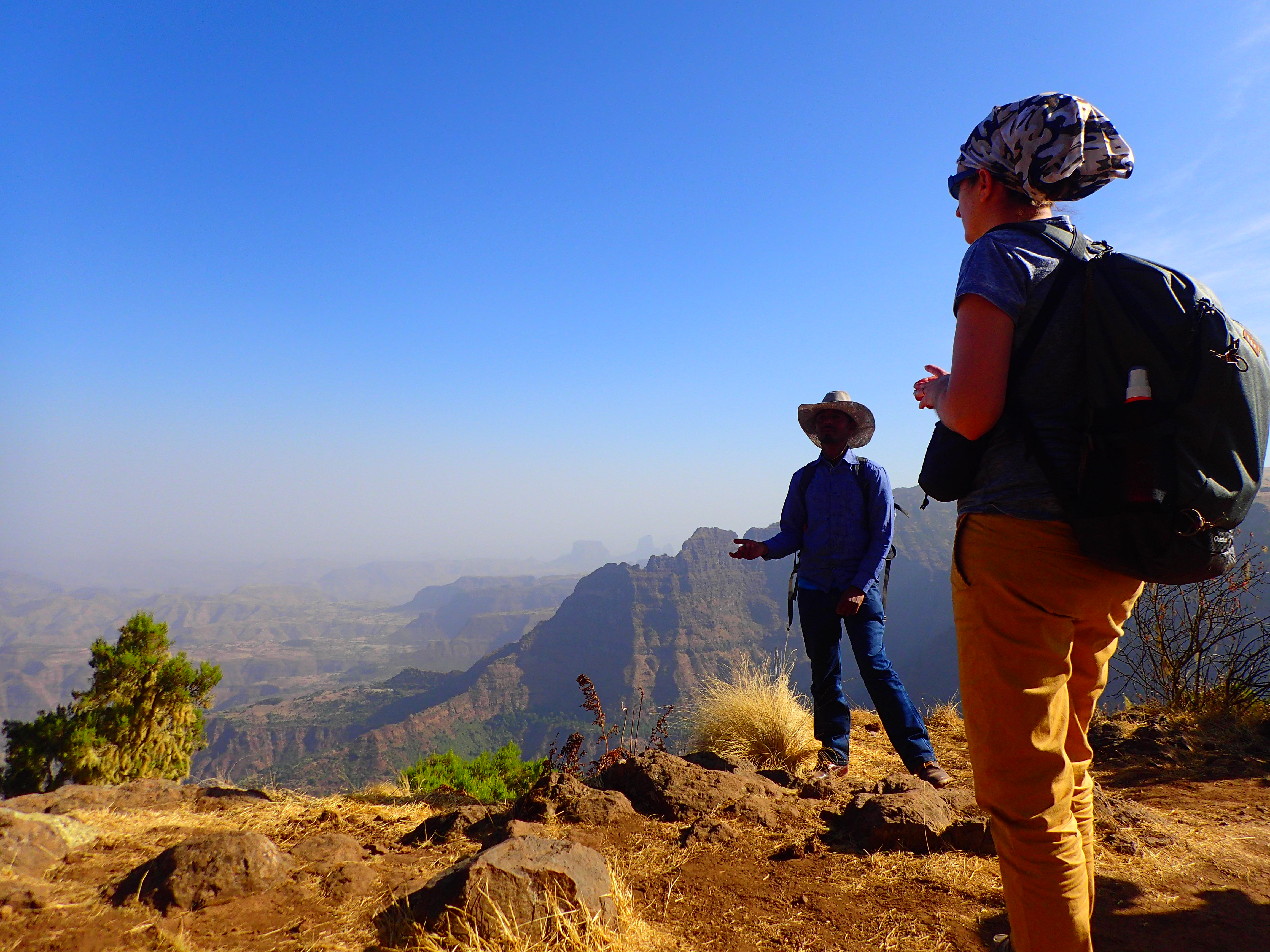En cours de route, de beaux points de vue, et la rencontre avec les Gelada baboon (singes endémiques). Une randonnée plutôt facile pour ce premier jour.
