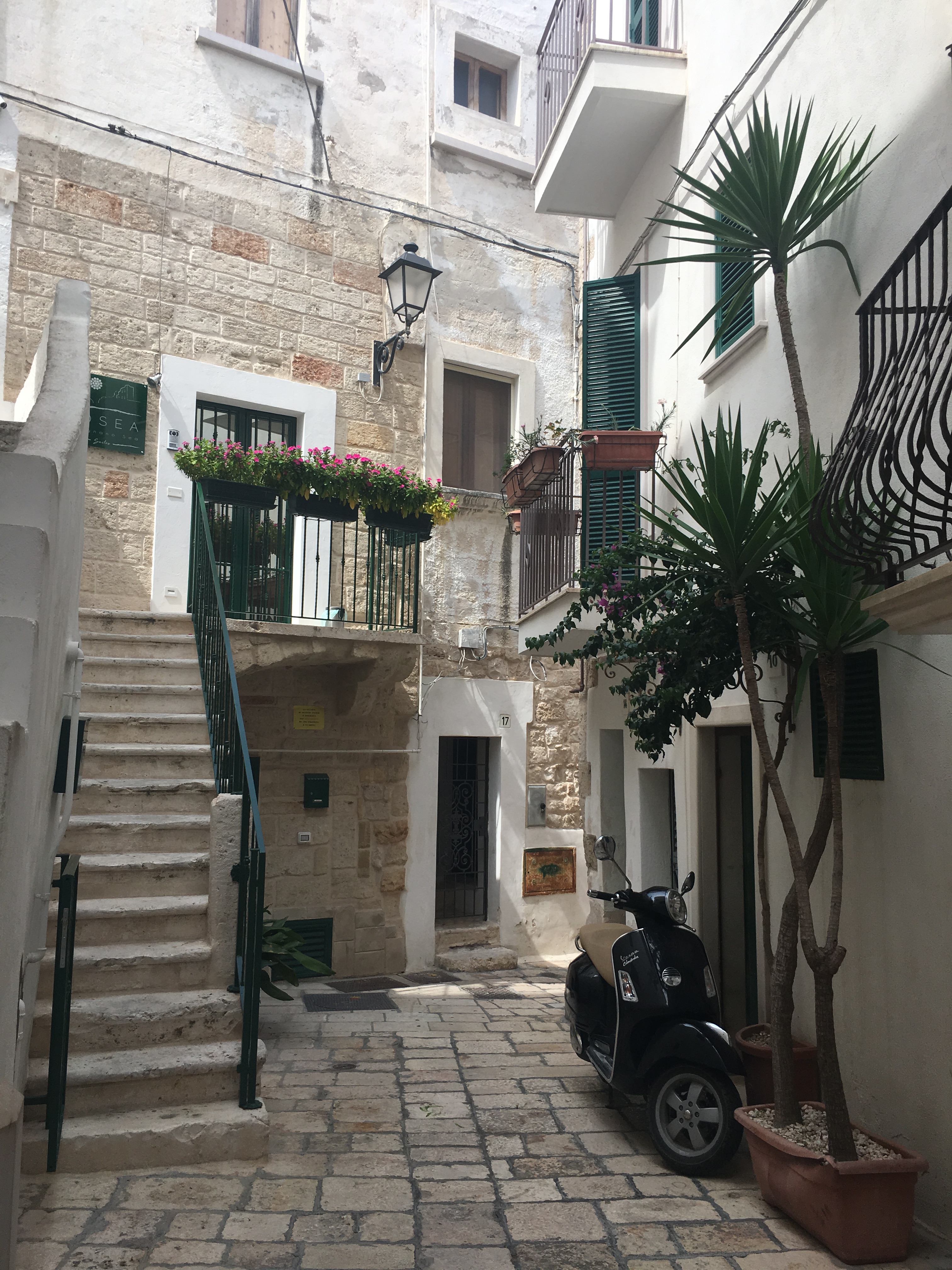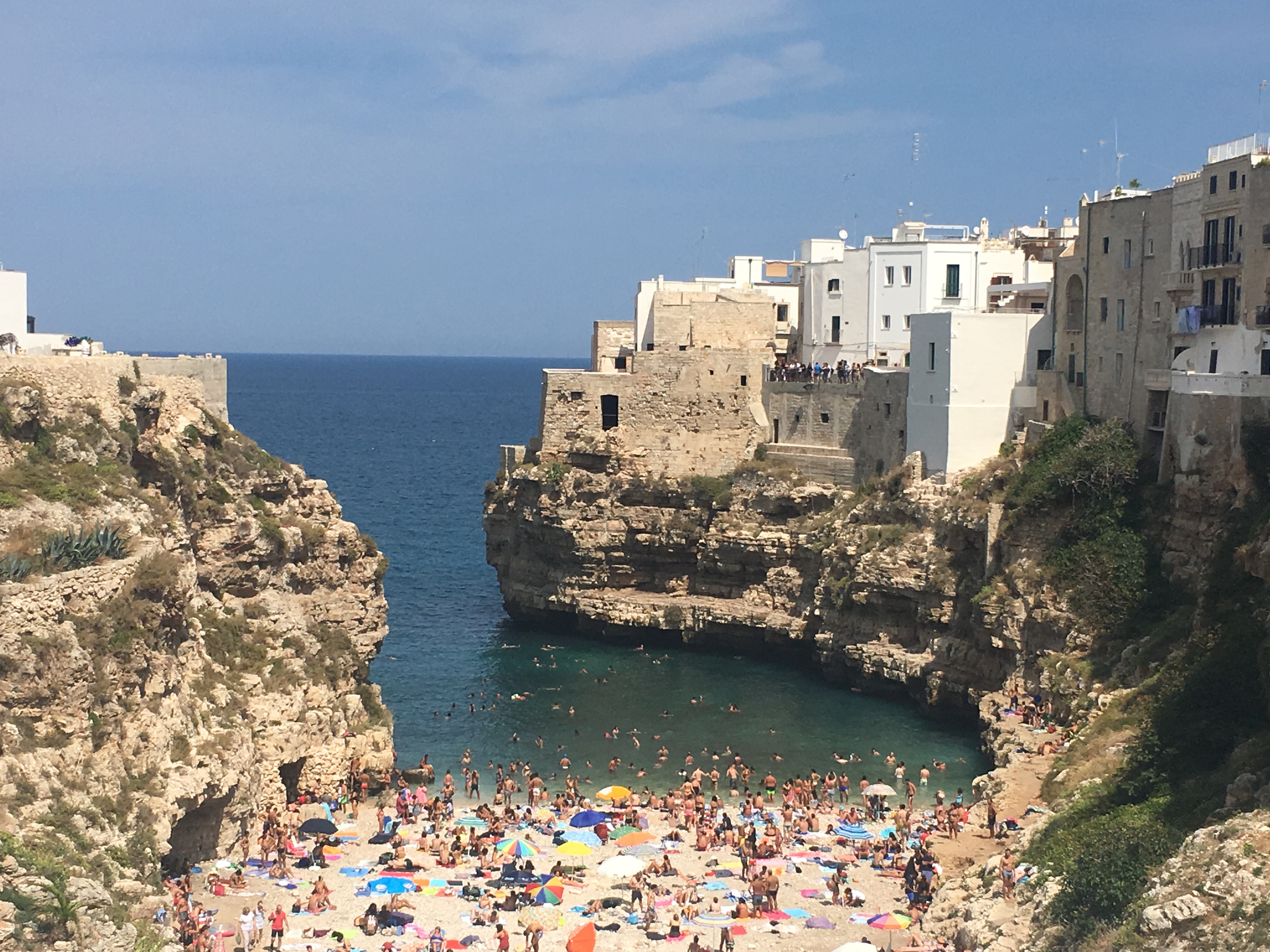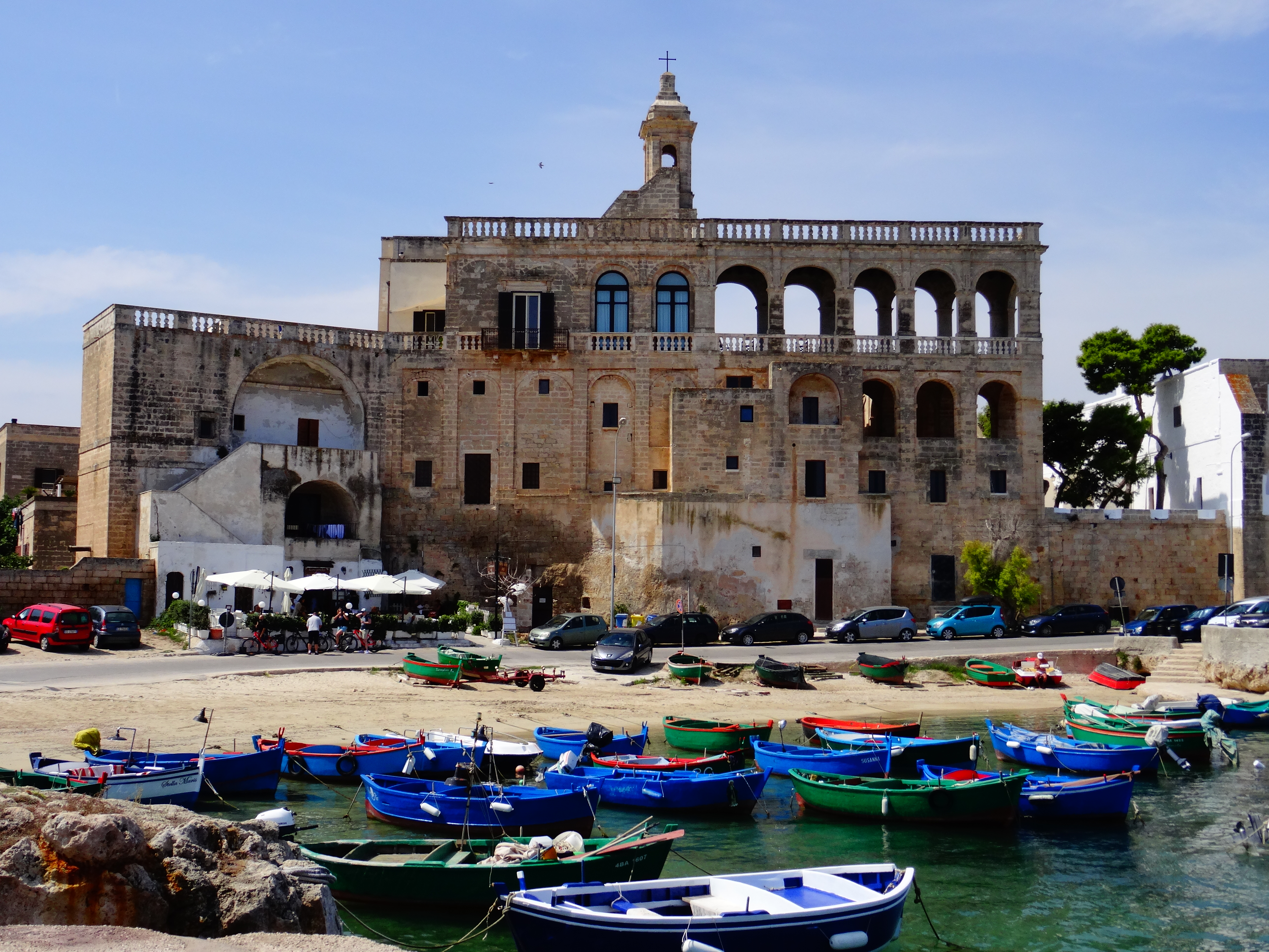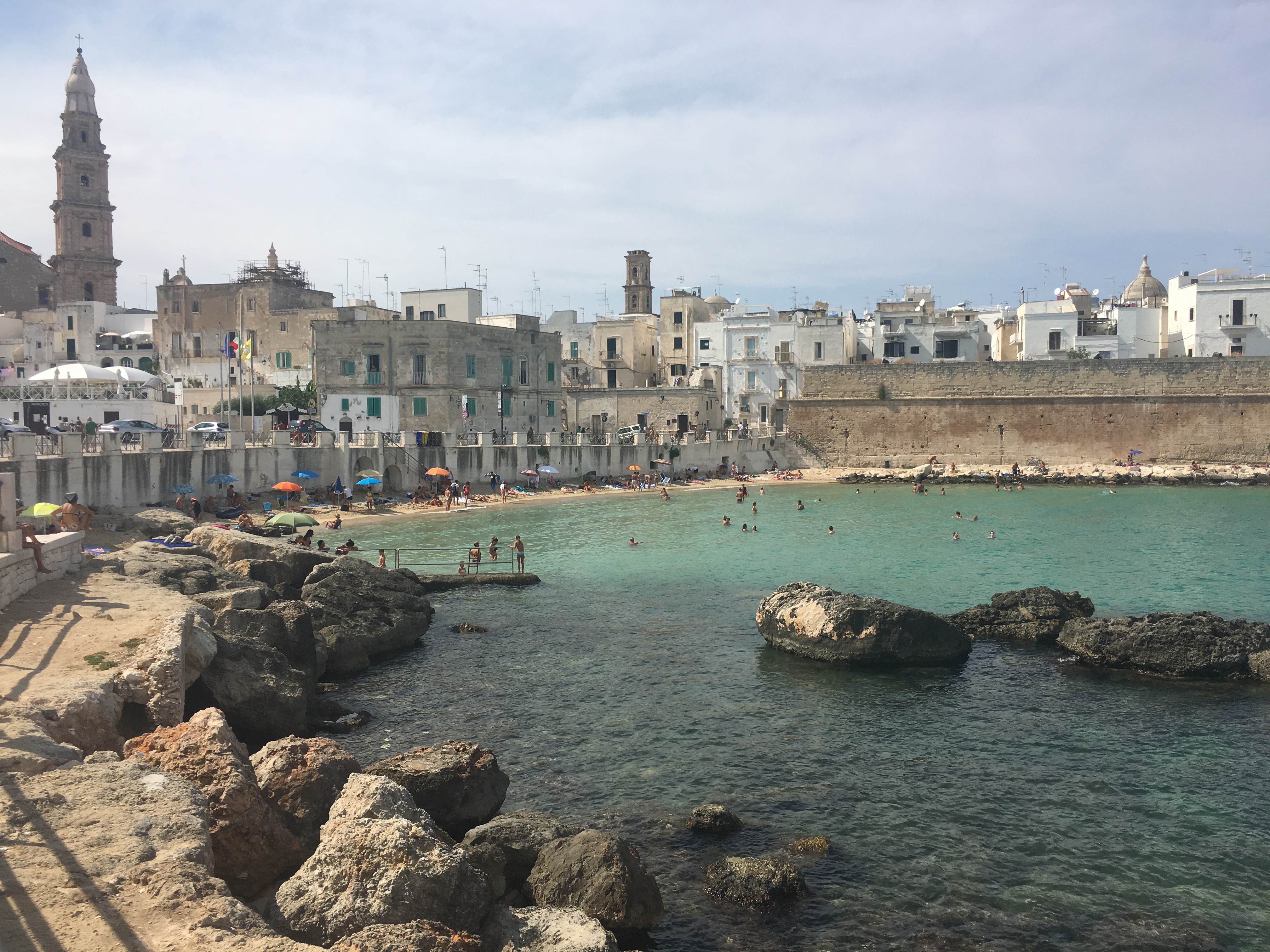 La ville, située sur la côte Adriatique, est réputée pour ses maisons blanches perchées en bord de falaises, ses grottes et ses criques ainsi que pour sa mer bleue. La Terrazza Santo Stefano offre une vue exceptionnelle sur Lama Monachile, une plage entourée de falaises sur lesquelles sont perchées des maisons blanches. On s’y arrête pour jeter un œil et manger un morceau mais comme il y a pas mal de monde on ne va pas s’attarder même si les petites ruelles du centre historique mériteraient d’être explorée plus assidûment.