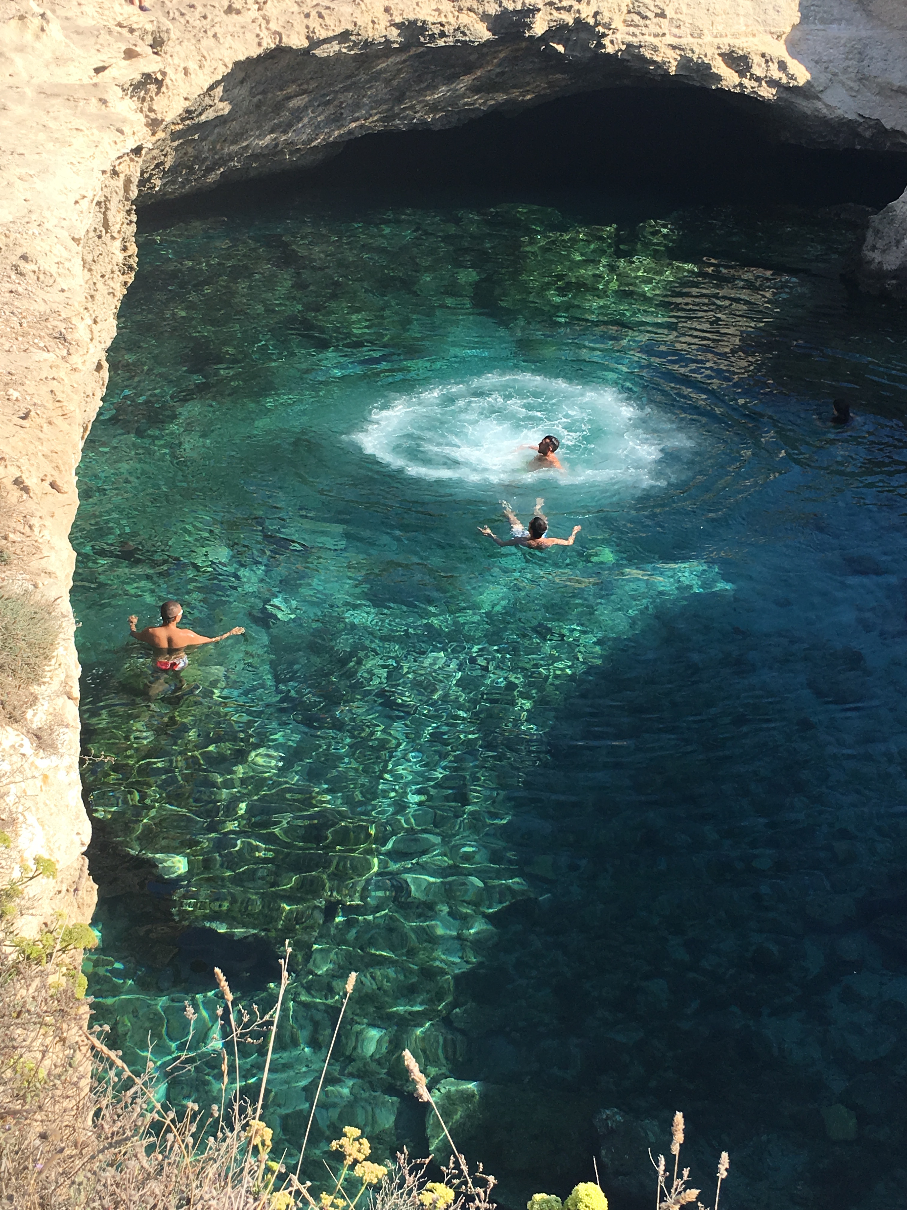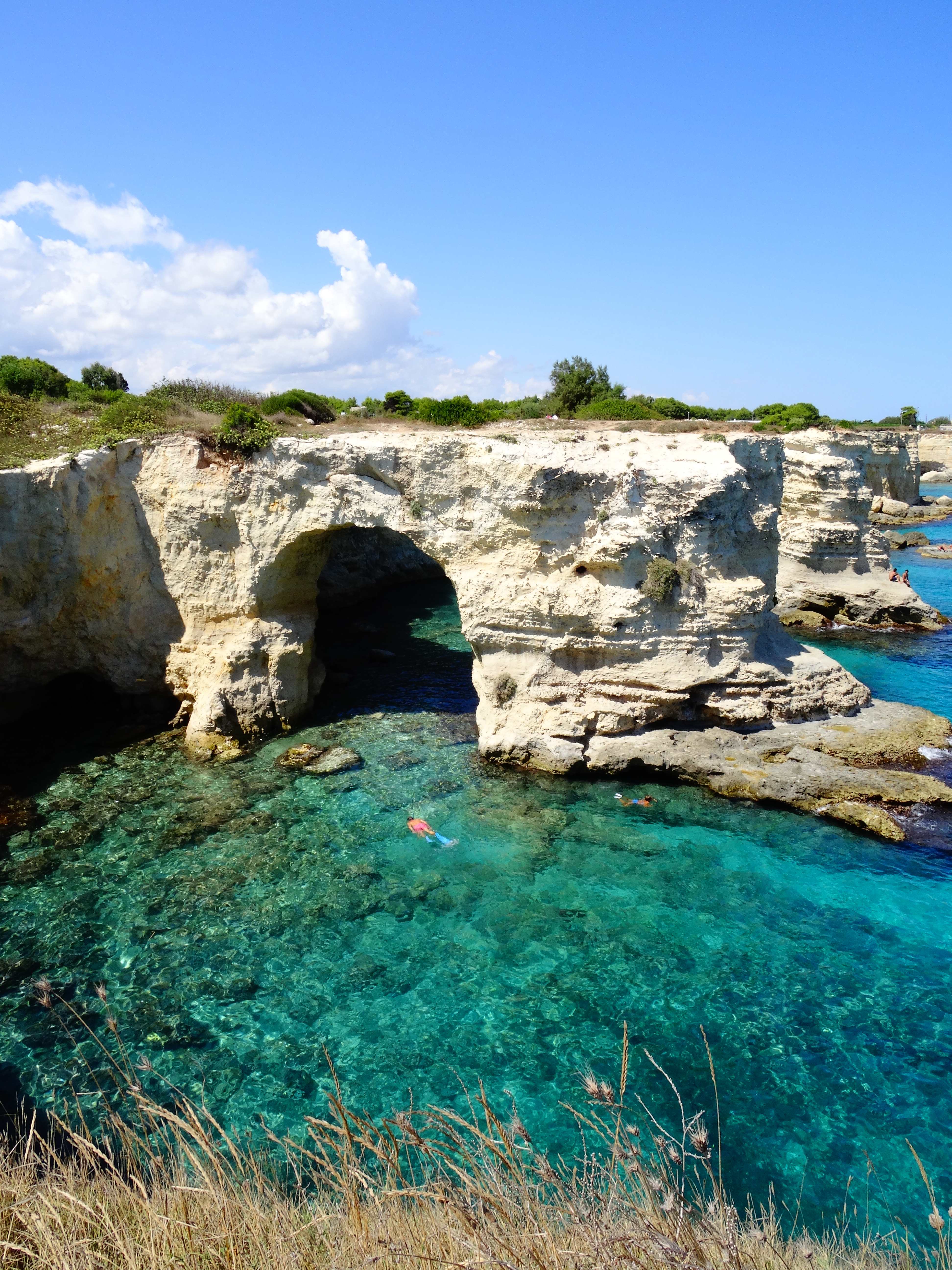 Coup de cœur pour la baignade dans les Pouilles à Torre Sant’Andrea avec son eau turquoise et ses formations rocheuses en forma d’arches. Il est possible d’y nager et même d’y sauter pour les plus téméraires. Des images valent mieux qu’un long discours