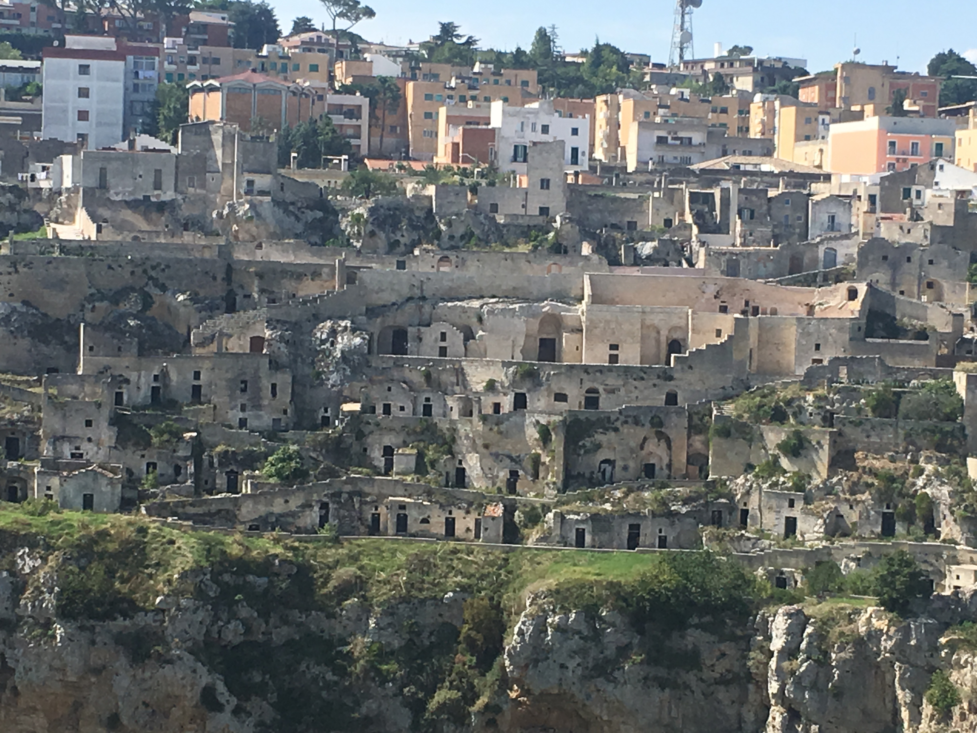 Deux quartiers sasso Barisano et sasso Caveoso percés de grottes, d’étranges habitations ou églises rupestres s’empilent à flanc de ravin. Les premières grottes ont été occupées depuis le Paléolithique. Puis, au cours des siècles, les grottes se sont transformées en véritable maisons. Aujourd’hui on recense près de 3 000 grottes habitables ainsi que plusieurs églises rupestres. Elles ont servi de refuge à plusieurs moines byzantins au VII ème et VIII ème siècle.