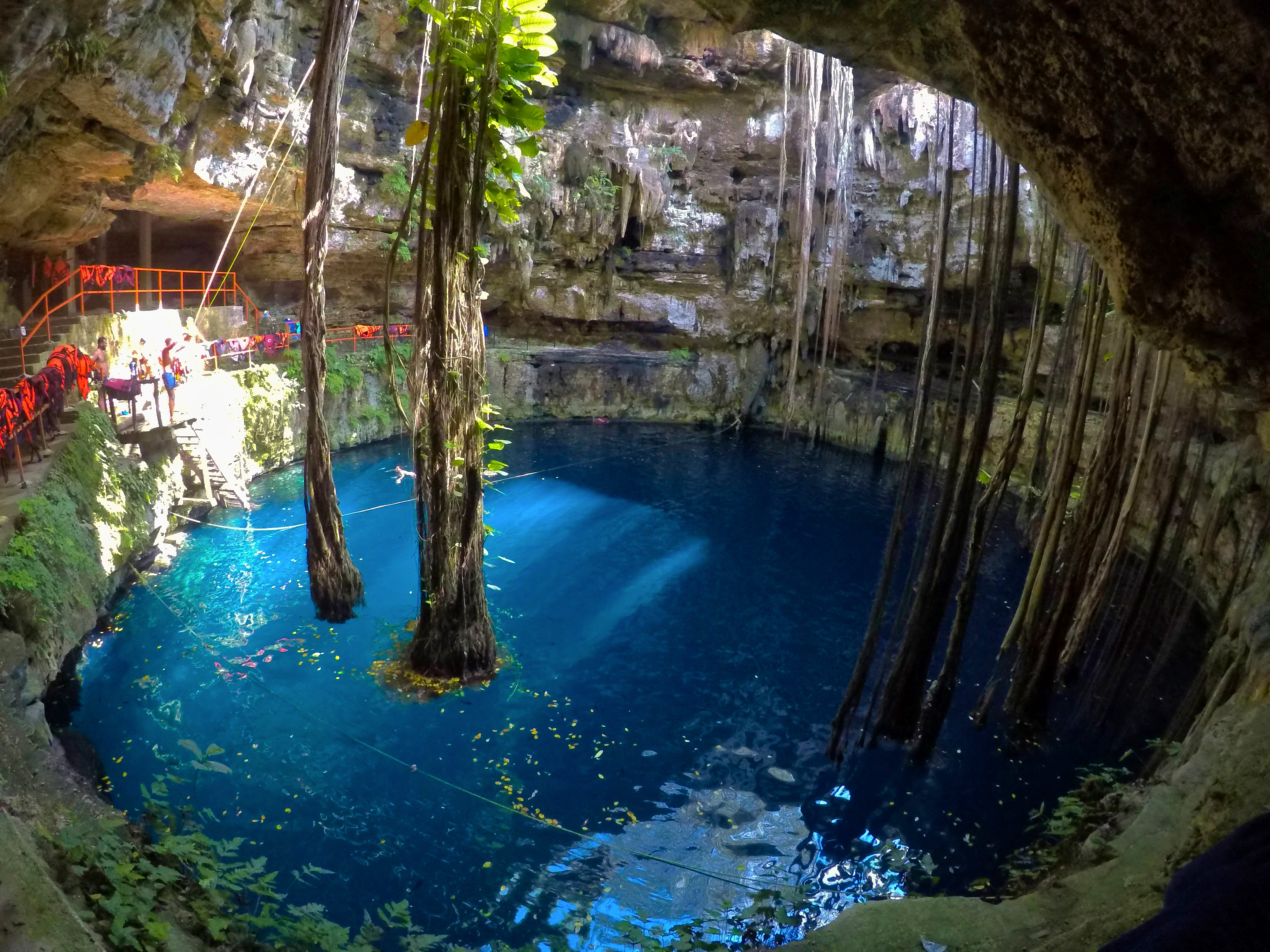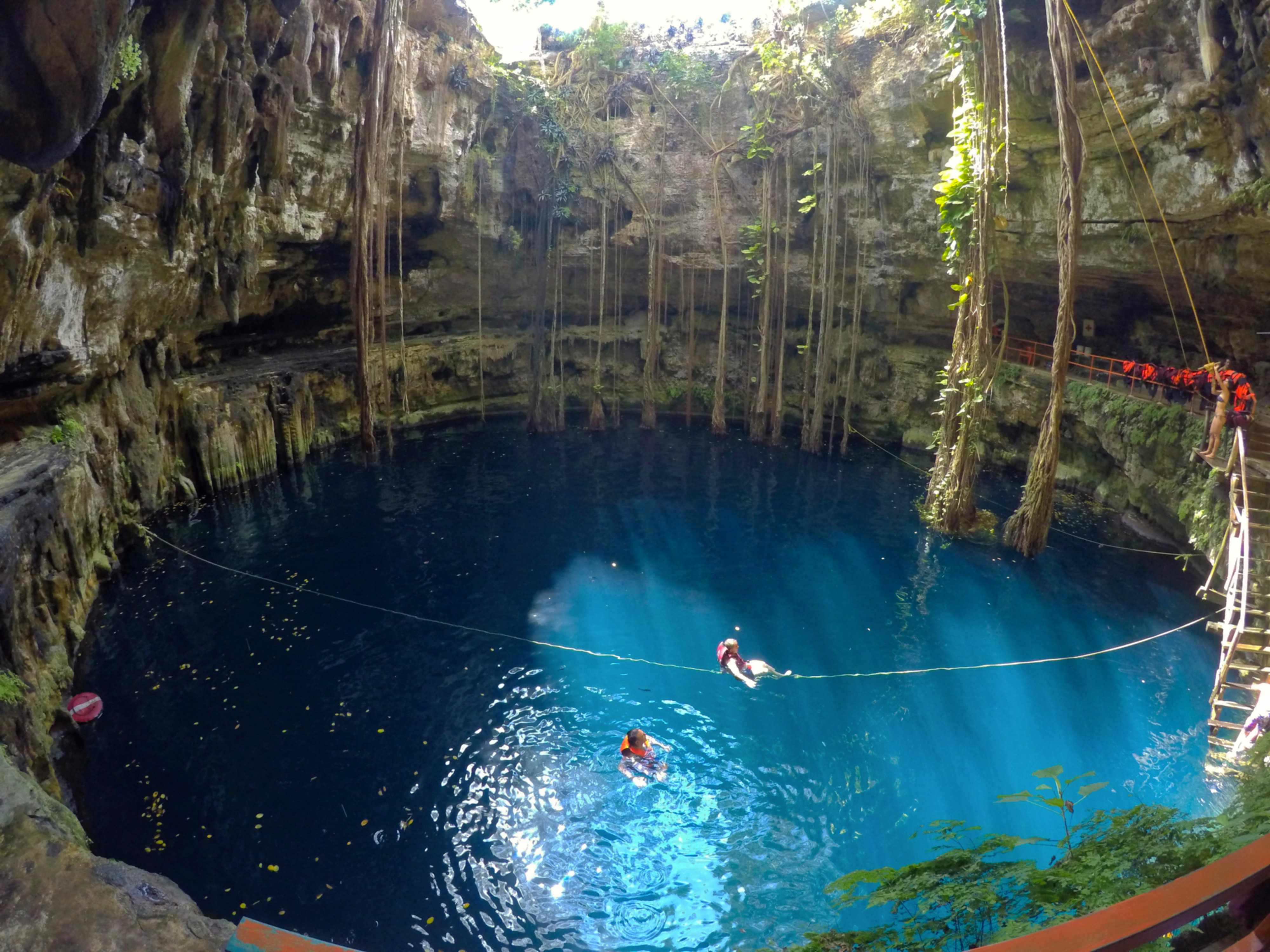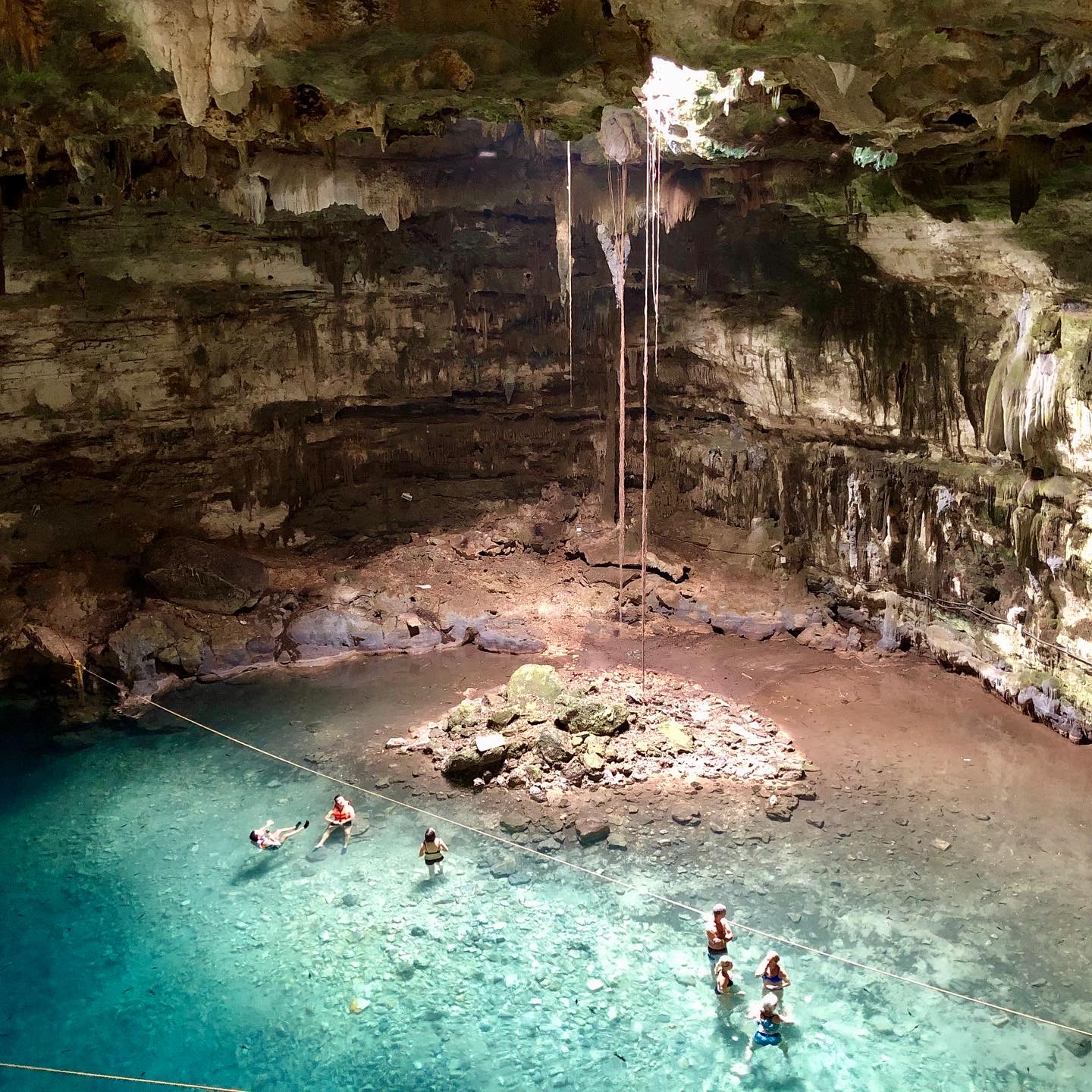 On quitte Cancun de bonne heure pour se diriger vers Valladolid et découvrir nos premiers cénotes. C est un monde vraiment unique qu on découvre. Au début on est pas très fière de se jeter dans ces trous d eaux qui semblent sans fin. Ils sont tous différents et magnifiques. Cette eau fraîche est la bienvenue parce qu à la surface le soleil tape… on aura l occasion d en découvrir d autres et on a hâte.