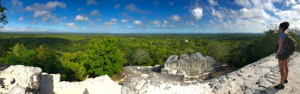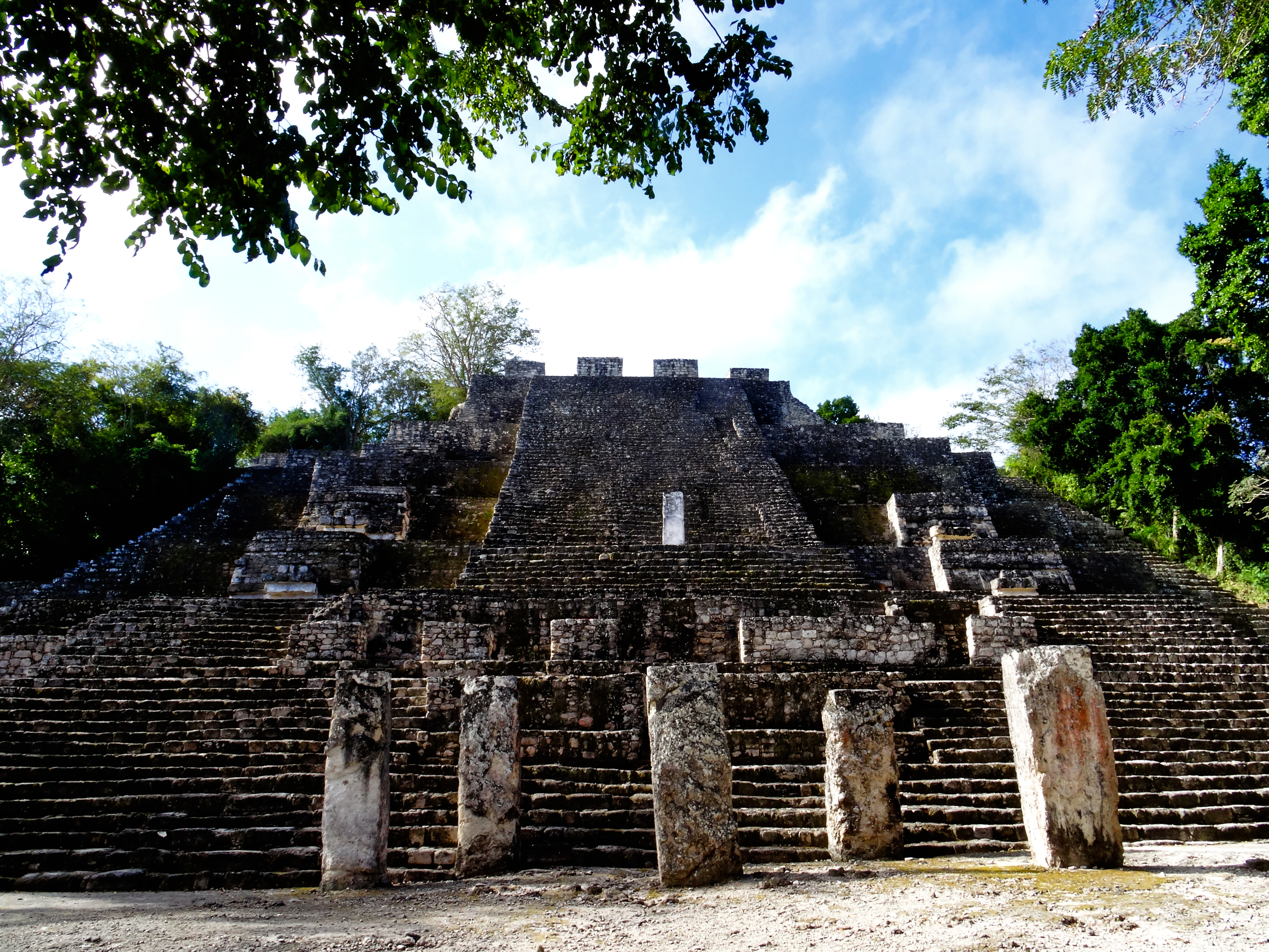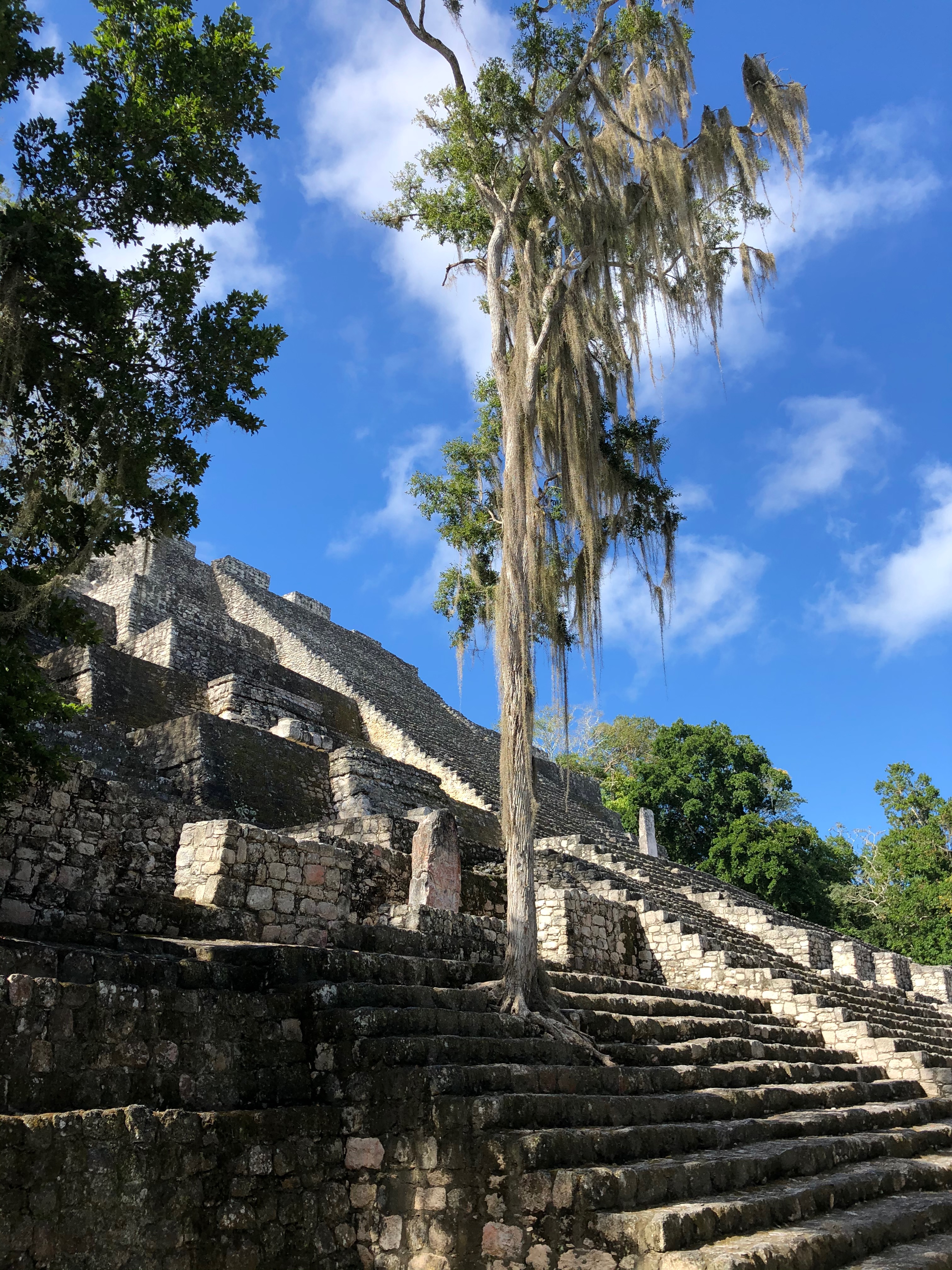 Un nouveau réveil aux aurores car 1h30 de route à travers la jungle nous attend avant d atteindre le plus grand site maya du Yucatan : Calakmul. Contrairement aux autres sites visités jusqu’à maintenant celui là est plus sauvage, entouré de jungle. Nous avons pu voir et surtout entendre les fameux singes hurleurs, ils ne sont pas très grands mais font un bruit terrible. Après avoir escaladés les différentes pyramides nous reprenons la route pour la laguna de Bacalar pour prendre enfin un peu de repos.