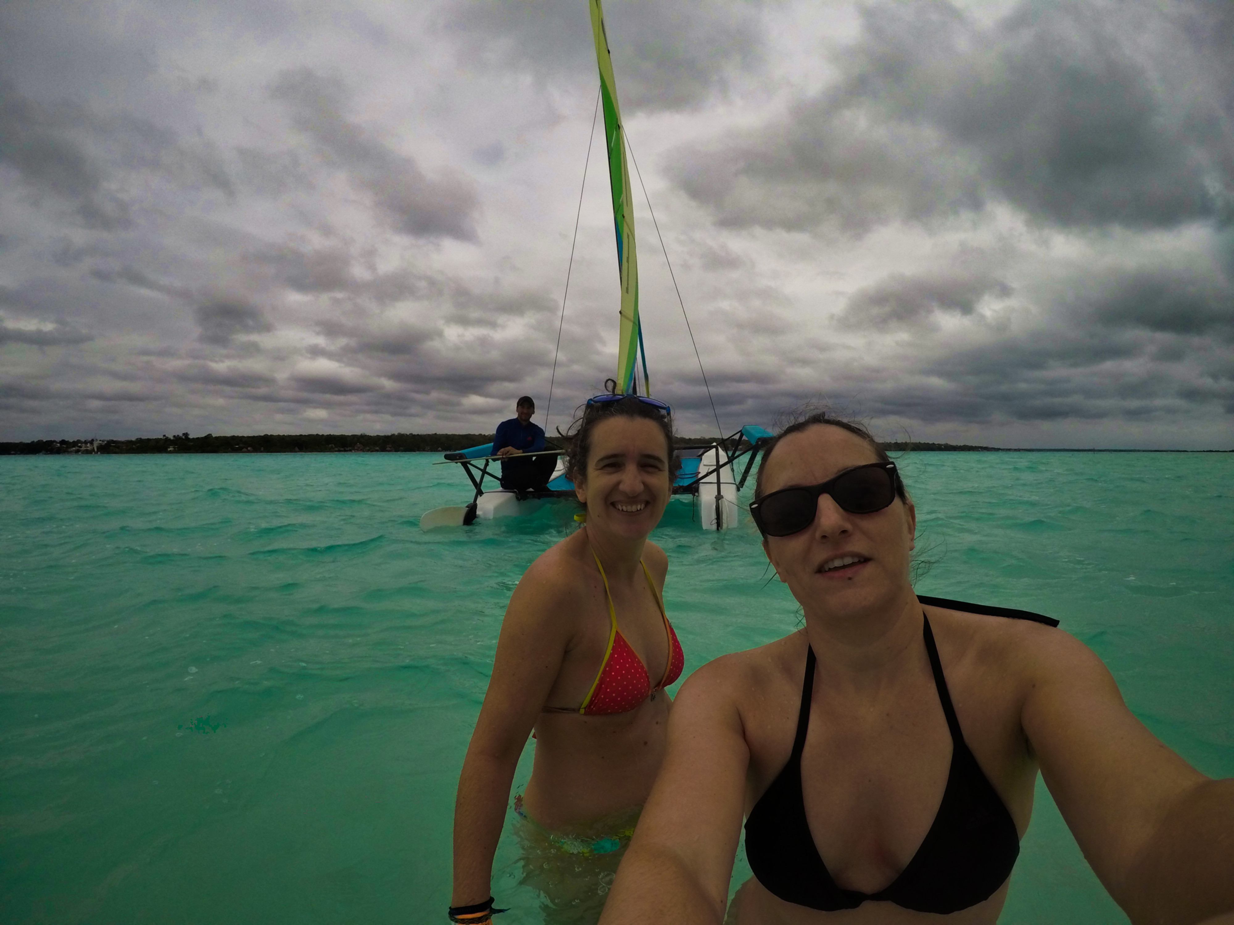Pour le deuxième jour c est un temps nuageux mais sec qui nous attend. Nous partons malgré tout faire un tour en catamaran et même si la lagune n’a malheureusement pas ses belles couleurs habituelles nous avons passé un bon moment avec Miguel car le vent était bien présent. L eau étant particulièrement chaude les baignades ont été bien agréables. Demain nous repartons sur la route…