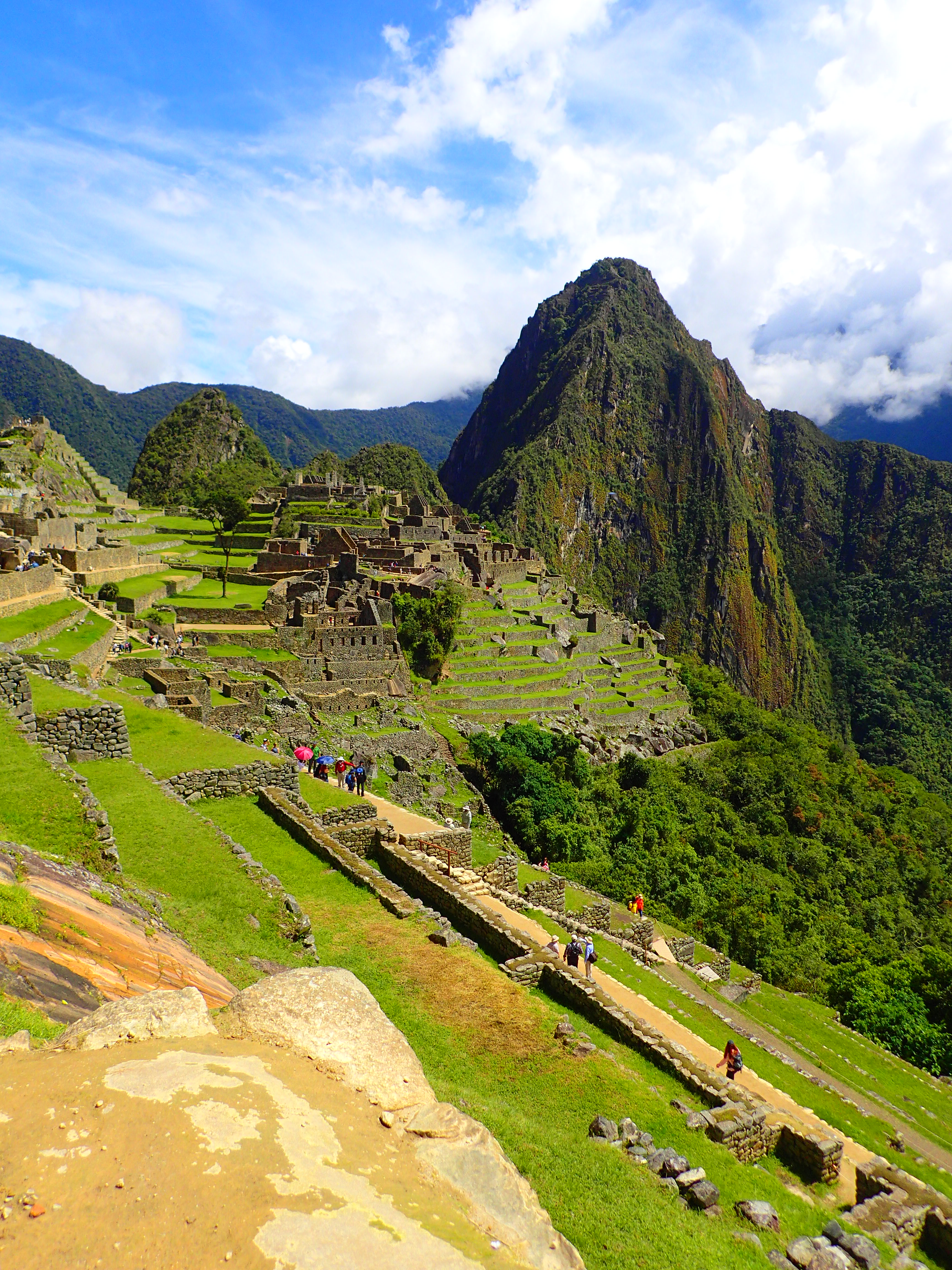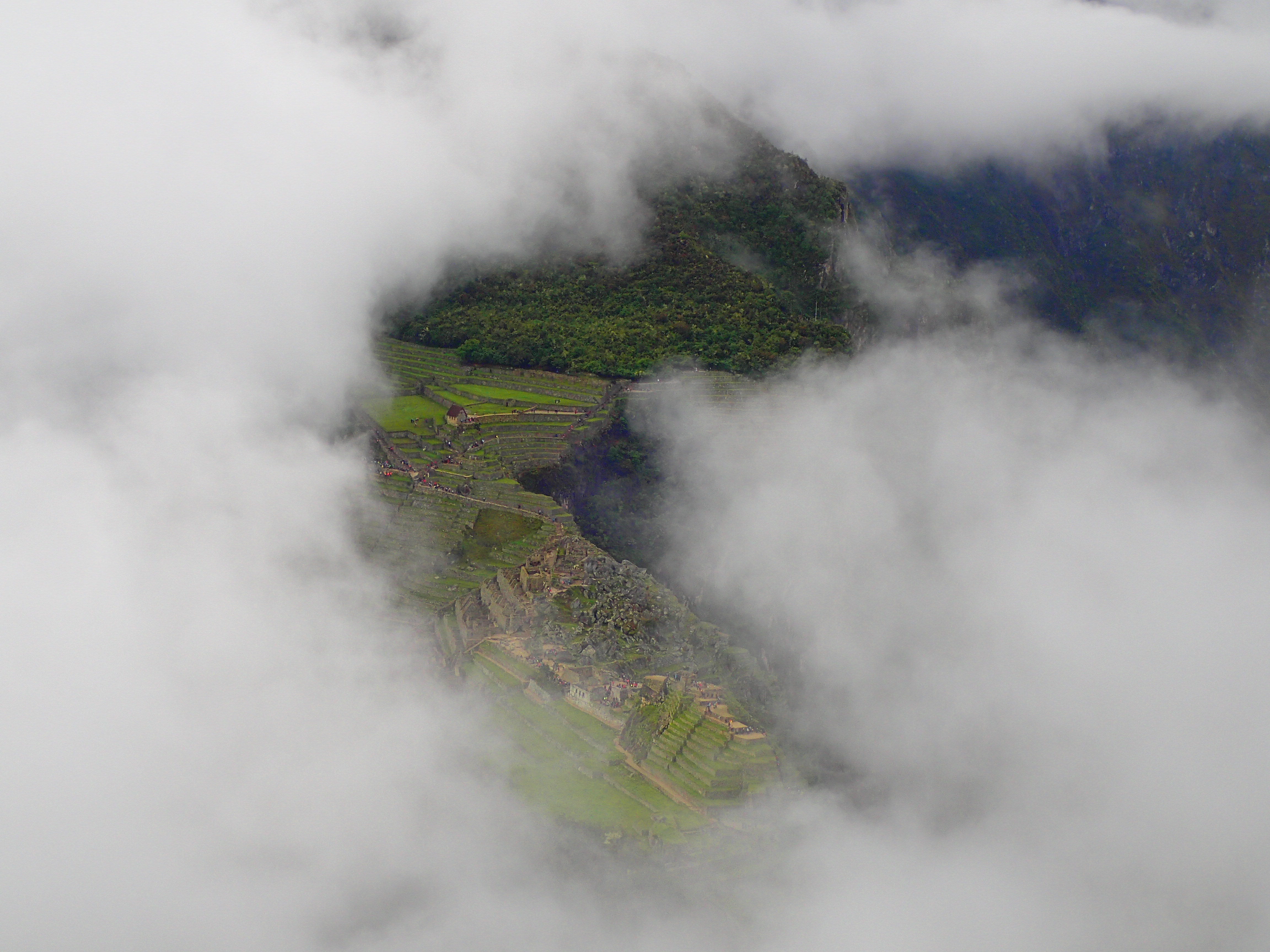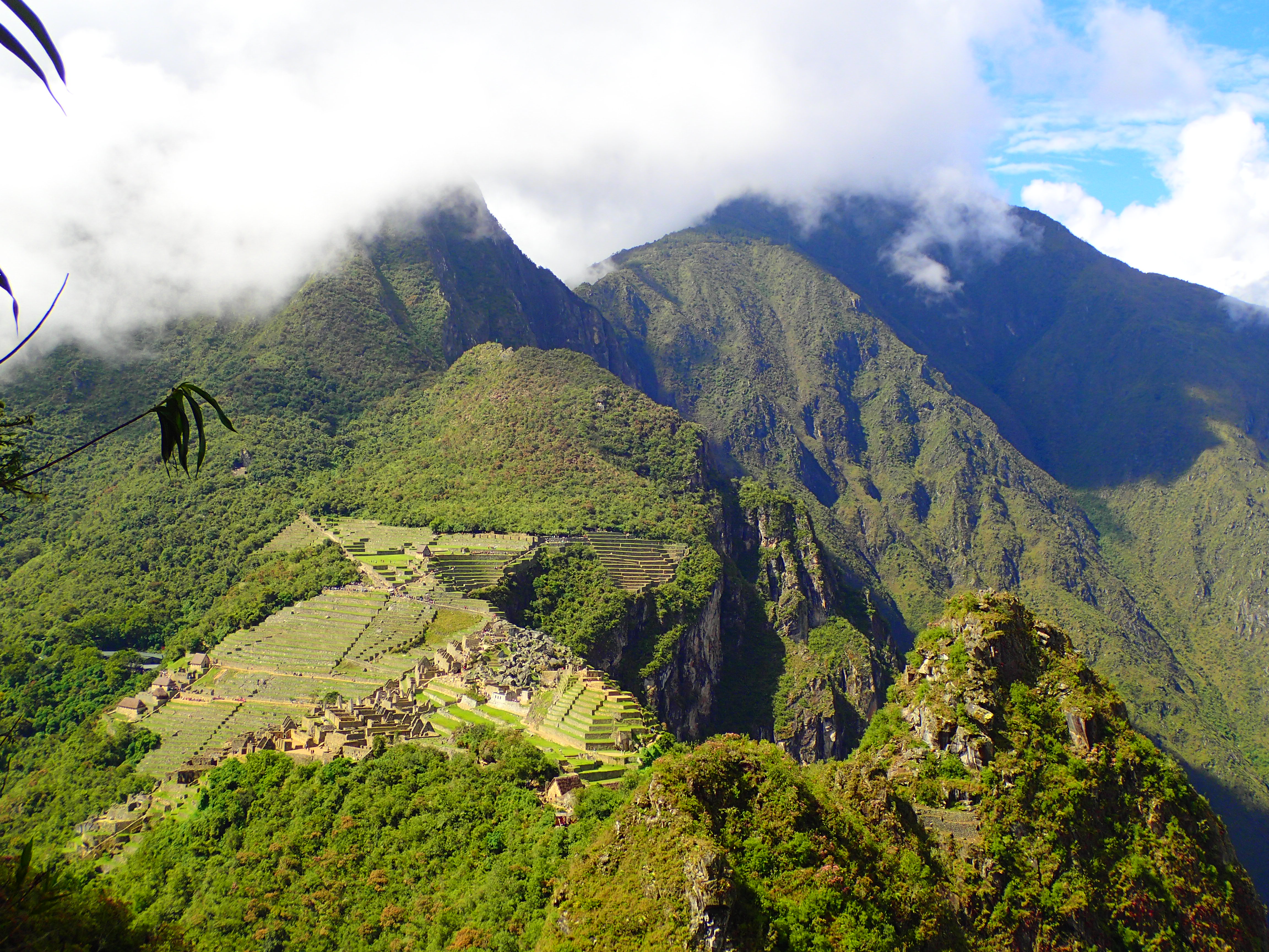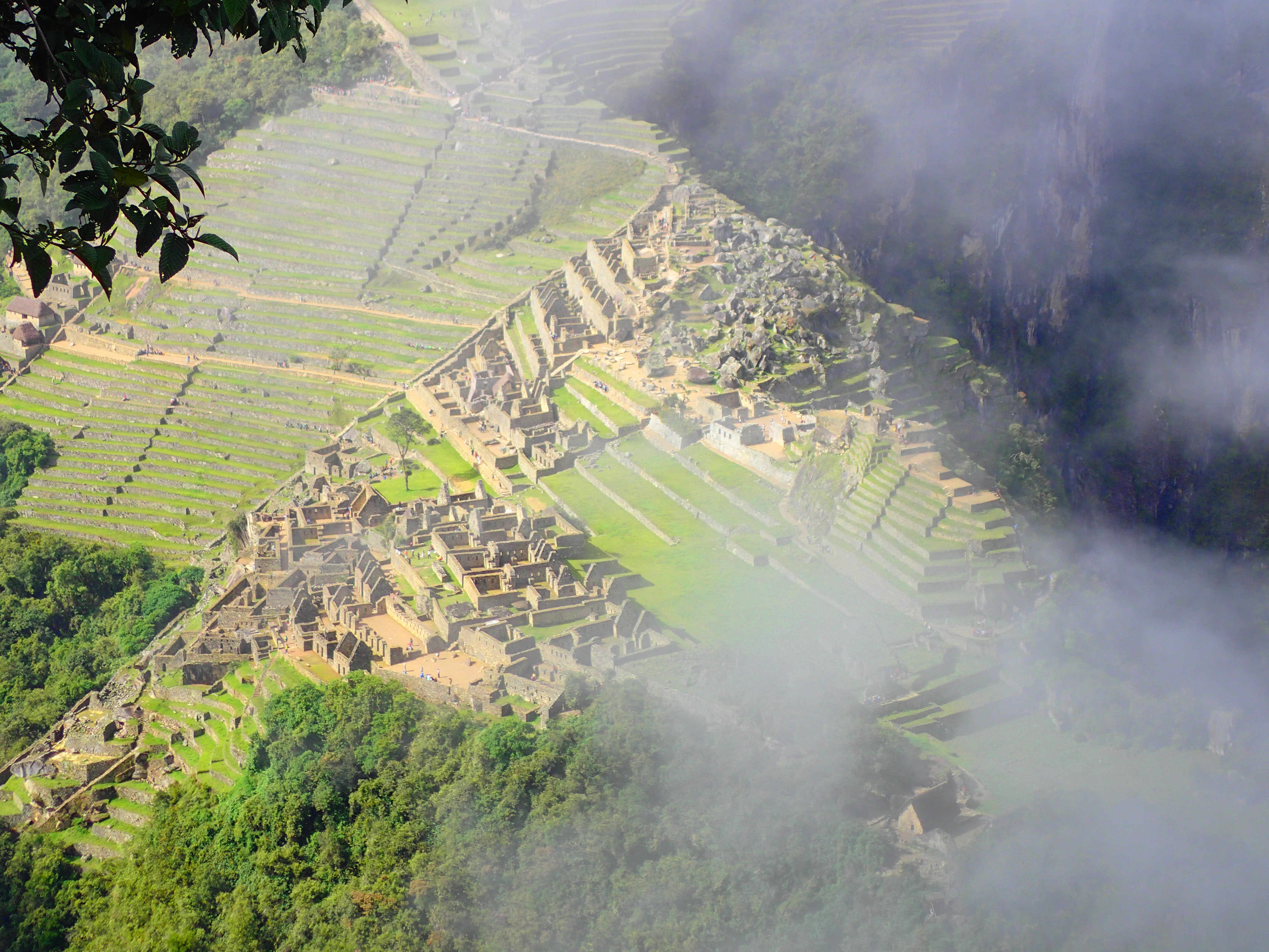 Debout 4h du matin pour être les premières à entrer sur le site. A 7h ascension du Wayna Picchu, la montagne qui surplombe le site. C est très abrupte il ne faut pas avoir le vertige. Arrivées au sommet la brume cache la vue mais la patience en viendra à bout et après de longues minutes le ciel s éclaircit et nous offre la chance de pouvoir admirer le Machu Picchu.