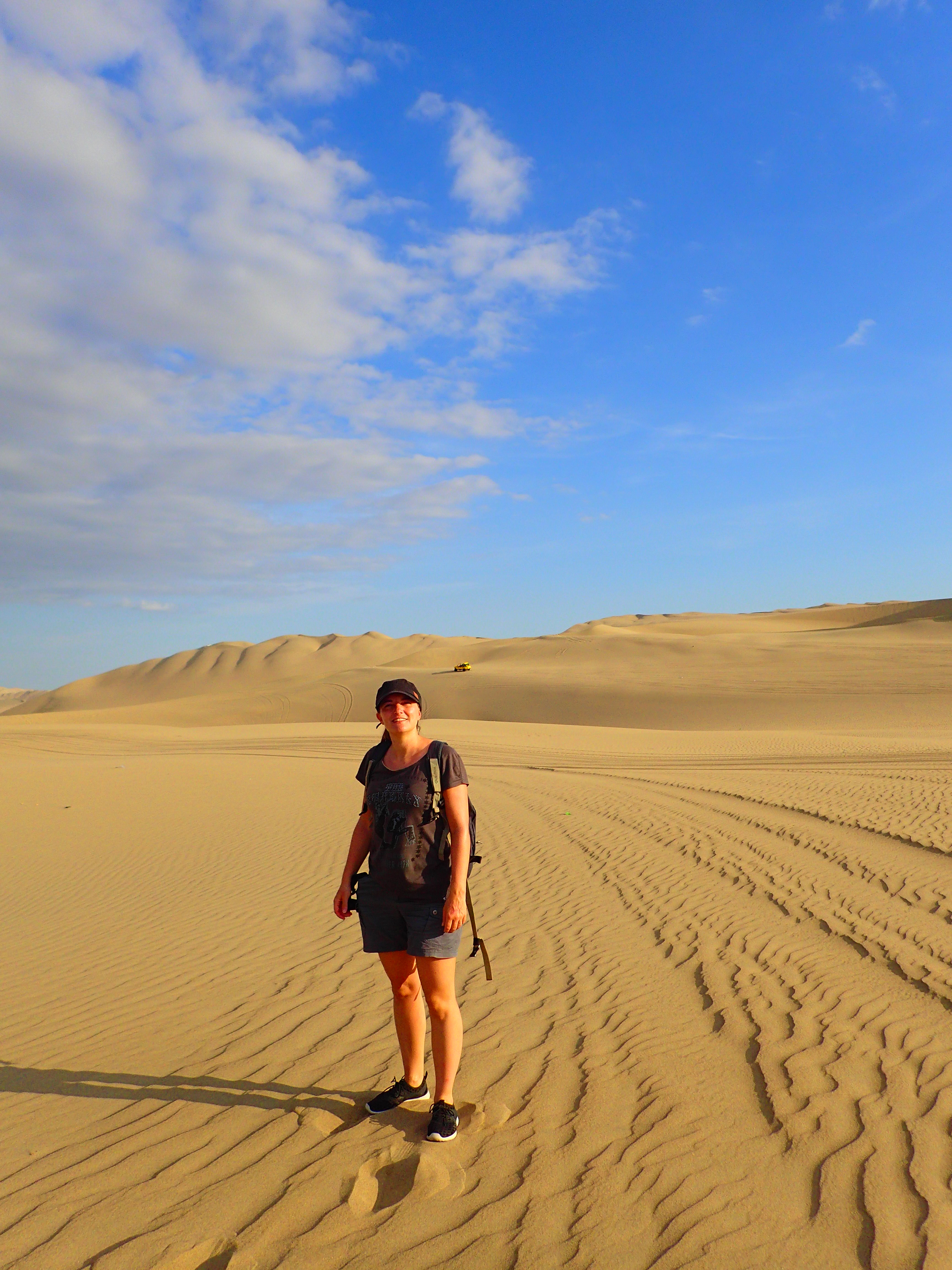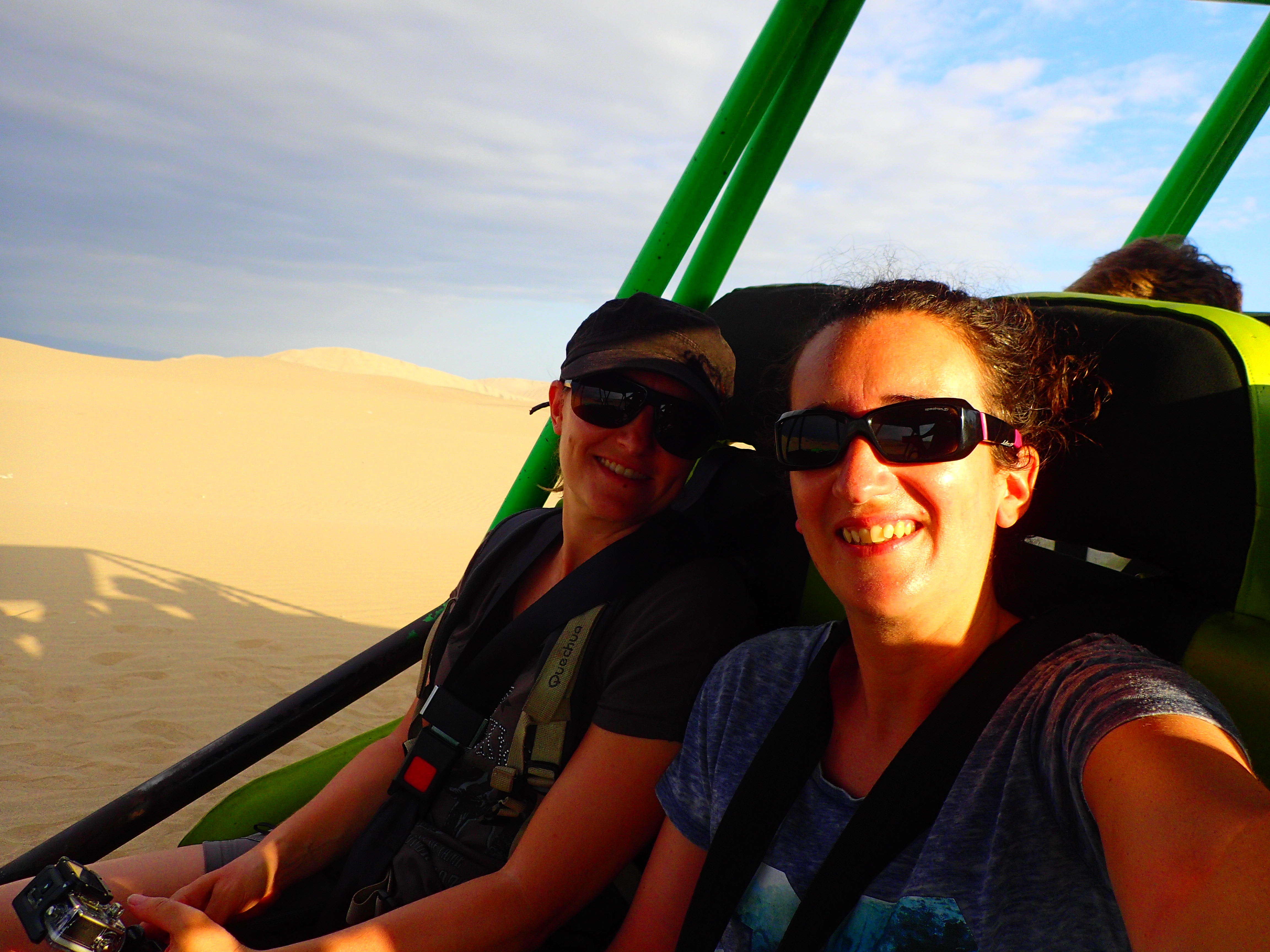 Après avoir passé toute la journée à se baigner et à rougir on se motive pour aller participer à l activité numéro un du coin : un tour en buggy dans les dunes pour voir le couché du soleil agrémenté de descentes en sandboard. On s est amusée comme des gamines 😊