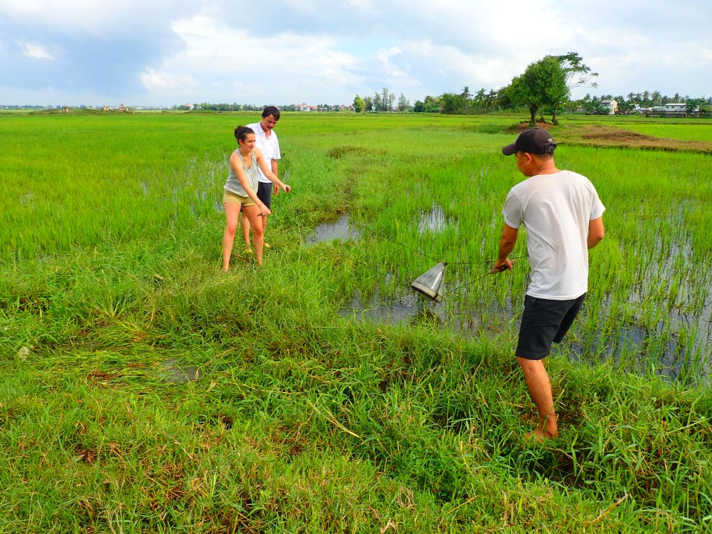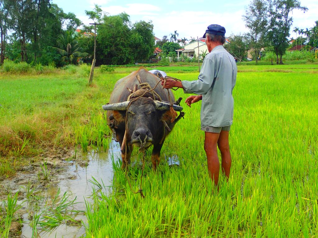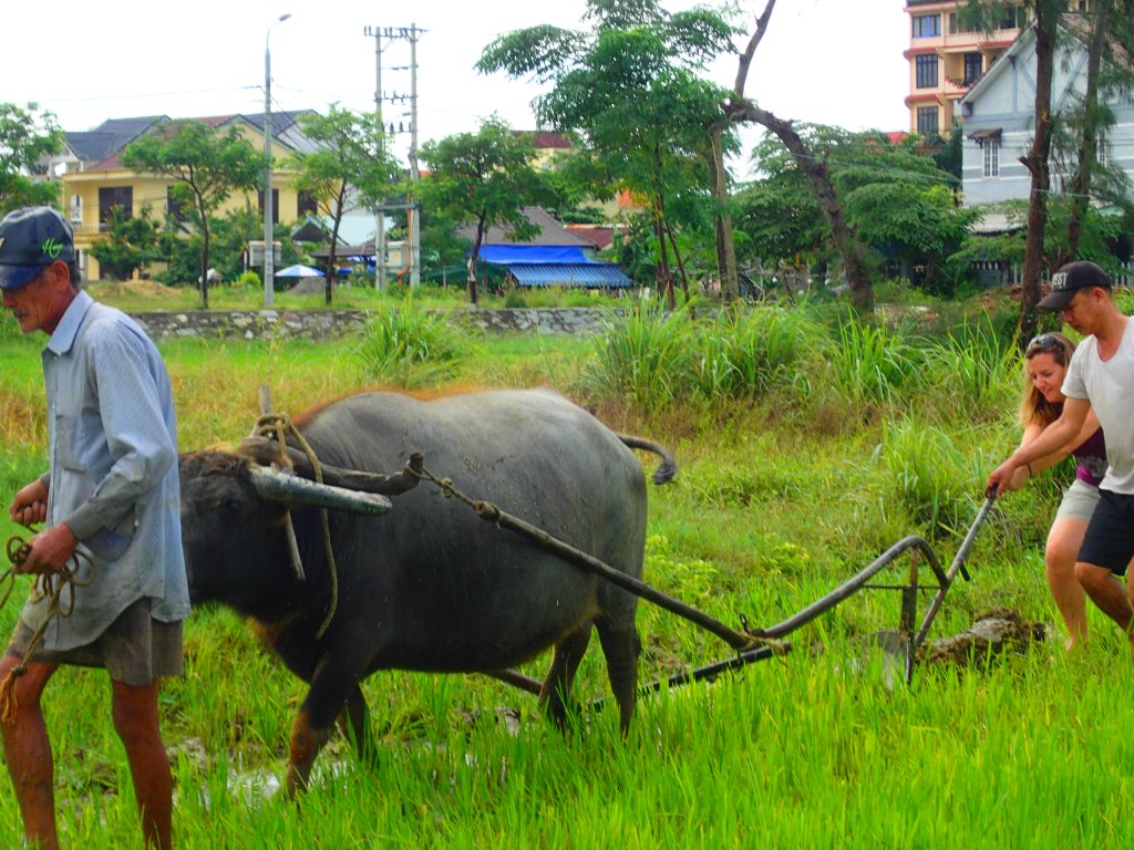 Aujourd’hui on s y colle, les pieds dans la rizière. On retire l’eau, on laboure avec le buffle, on arrose les jardins. Un super moment avec M. Thanh dans la campagne Vietnamienne.